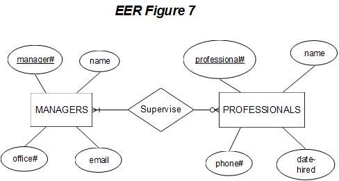 The basic ER model also does not indicate whether relationships are mandatory or optional (referred to as the optionality of relationships). Returning to the manager-- professionals diagram in Figure 1, it does not show whether a manager must be supervising professionals, or whether a professional must be supervised by managers. Finally, the basic ER model does not show the attributes of each entity and relationship and in particular the primary key of each entity and relationship (if applicable). Extended entity-relationship (EER) models show all of the above characteristics (cardinality, optionality, and attributes).