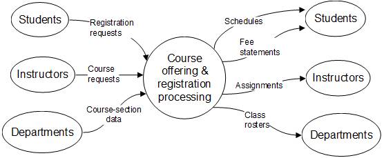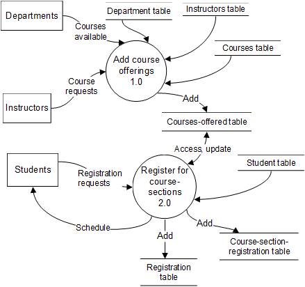 In the systems analysis stage, analysts examine the current system and interview users to determine their information needs. The result of this analysis is usually a narrative description of a business scenario, sometimes accompanied by a flowchart. The question, then, is how exactly does one go from narrative descriptions of business scenarios to a functioning database system. Moving from systems analysis to logical systems design, the focus turns to the creation of logical models that are pictorial representations of users' information needs. The two aspects of logical design are logical data modeling and logical process modeling. We will explain logical data modeling using the entity-relationship (ER) approach. You might recall that we briefly introduced ER modeling in the previous chapter. Logical process modeling will be explained using data flow diagrams (DFD), also introduced in the previous chapter. Whereas ER models are aimed at constructing a logical data model, data-flow diagrams are aimed at constructing a logical process model of the system. The next chapter (chapter 9) describes the process of translating the logical data and process models into physical models aimed specifically at relational database development (creation of tables, database forms, etc.).